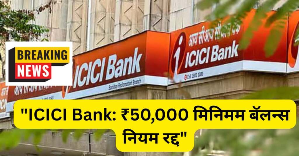 ब्रेकिंग न्यूज़! ICICI बँकेने ₹50,000 किमान मासिक शिल्लकाची अट मागे घेतली आहे—