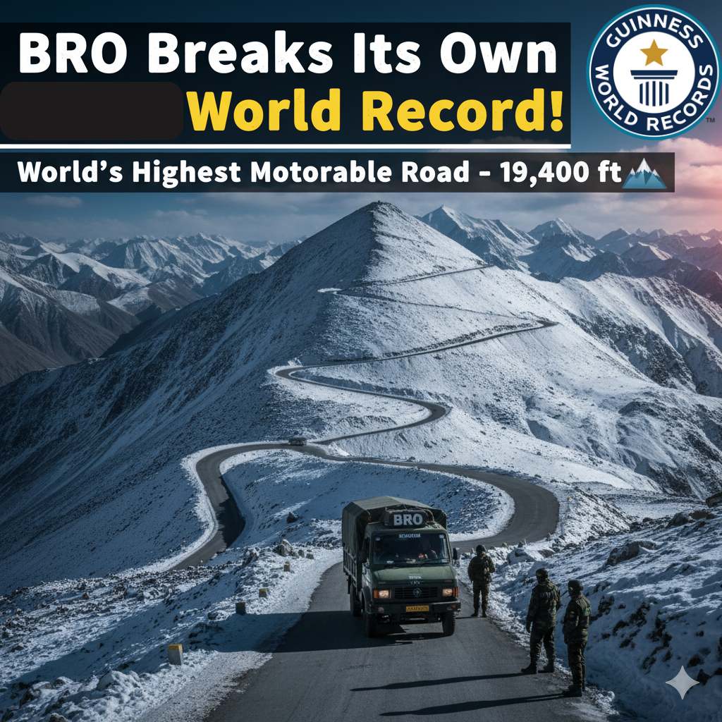 बॉर्डर रोड्स ऑर्गनायझेशन (BRO) ने पुन्हा एकदा इतिहास रचला आहे. जगातील सर्वात उंच मोटरेबल रोड बांधून त्यांनी आपलाच गिनीज वर्ल्ड रेकॉर्ड मोडला आहे.