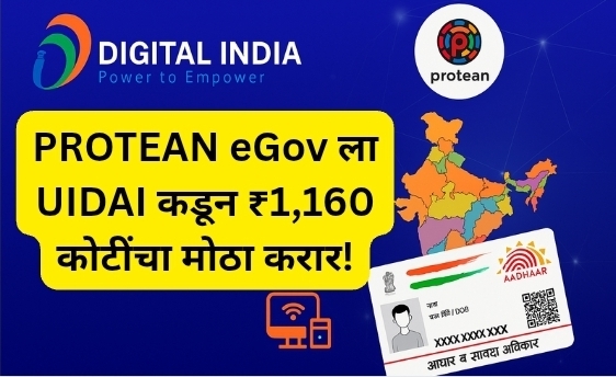 UIDAI चा ₹1,160 कोटींचा करार Protean eGov साठी मोठा टप्पा ठरू शकतो. भारतात नागरिकांसाठी आधार सेवा आणखी मजबूत करण्याच्या दृष्टीने हा निर्णय महत्त्वाचा मानला जात आहे.